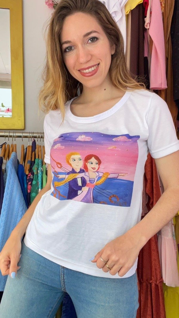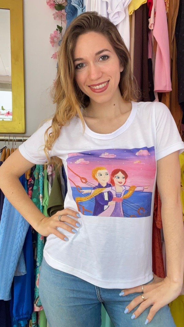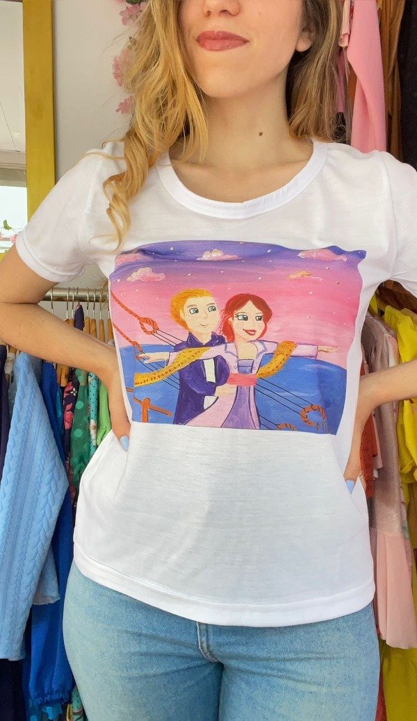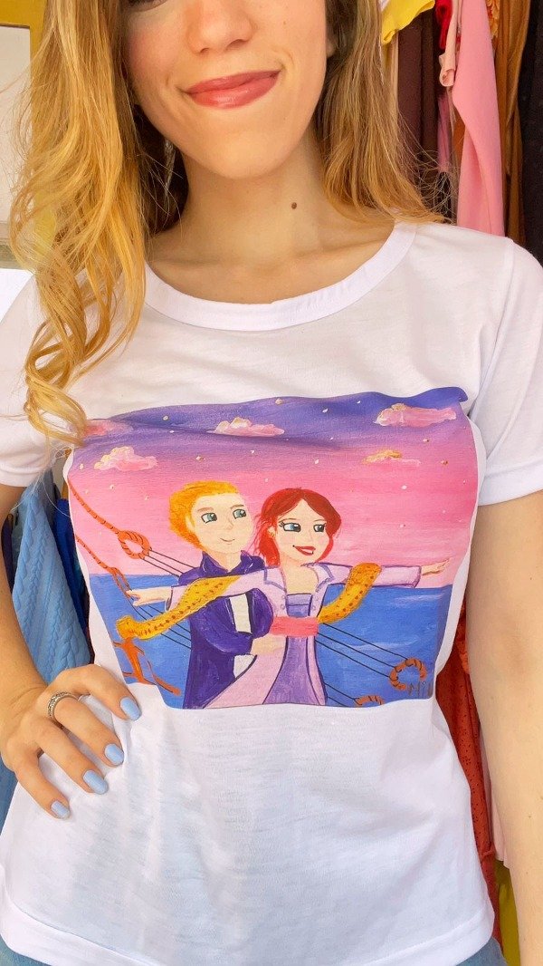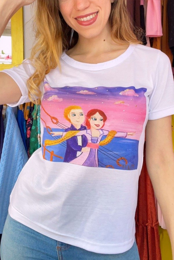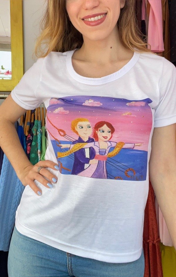Hermosa remera de algodon sublimada, con estampa de Titanic. Diseño exclusivo con ilustracion propia.