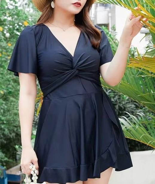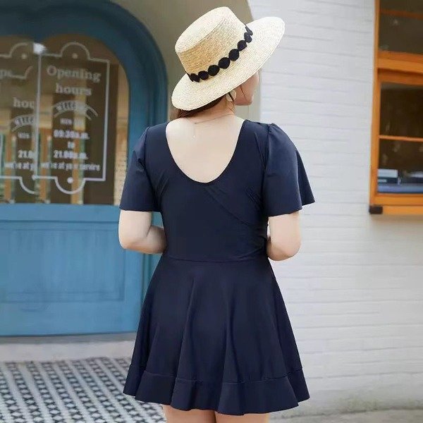 Hermosa malla modesta de lycra con almohadillas desmontable en la parte del busto, cruce en el frente y short (por separado). Detalle de volados en las mangas y en la falda.