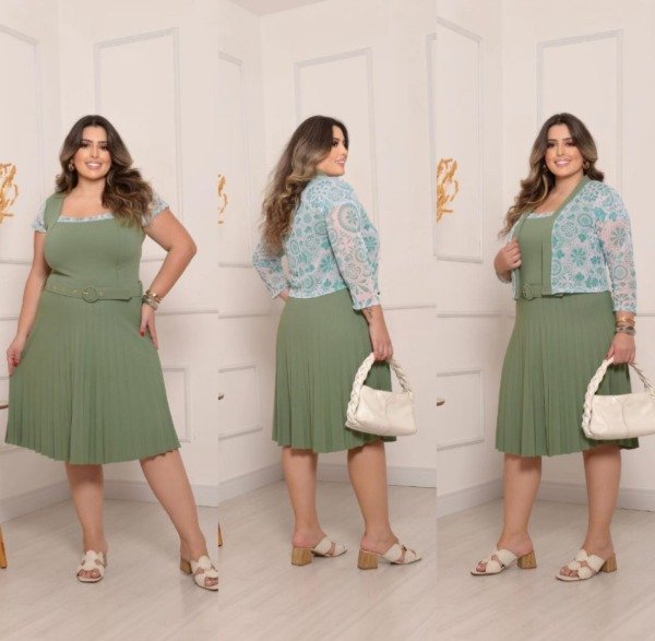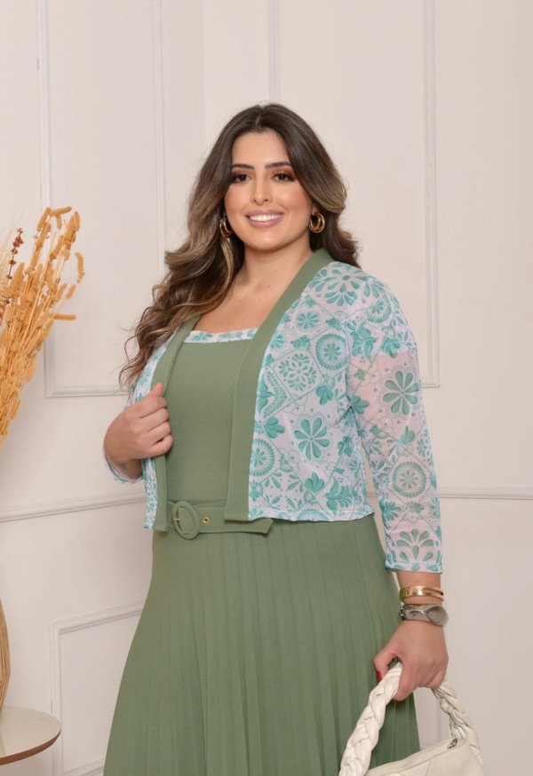 Hermoso conjunto importado de vestido y tolerita, combinado de tul estampado y de malha crepe. Vestido con escote cuadrado, falda plisada y pasa cinto. Tolerita de tul estampado.