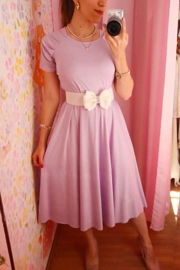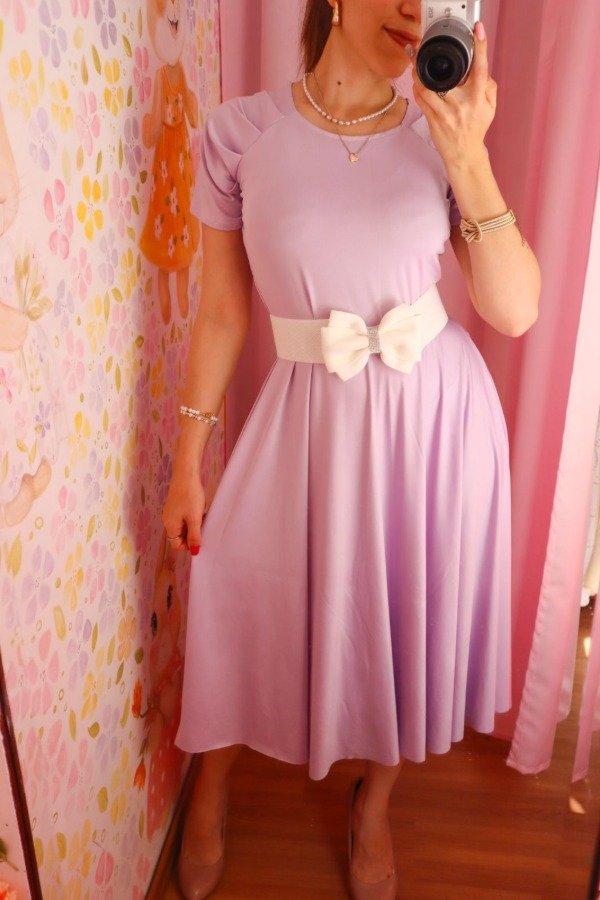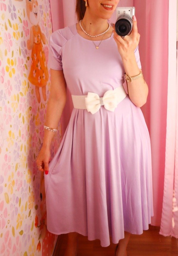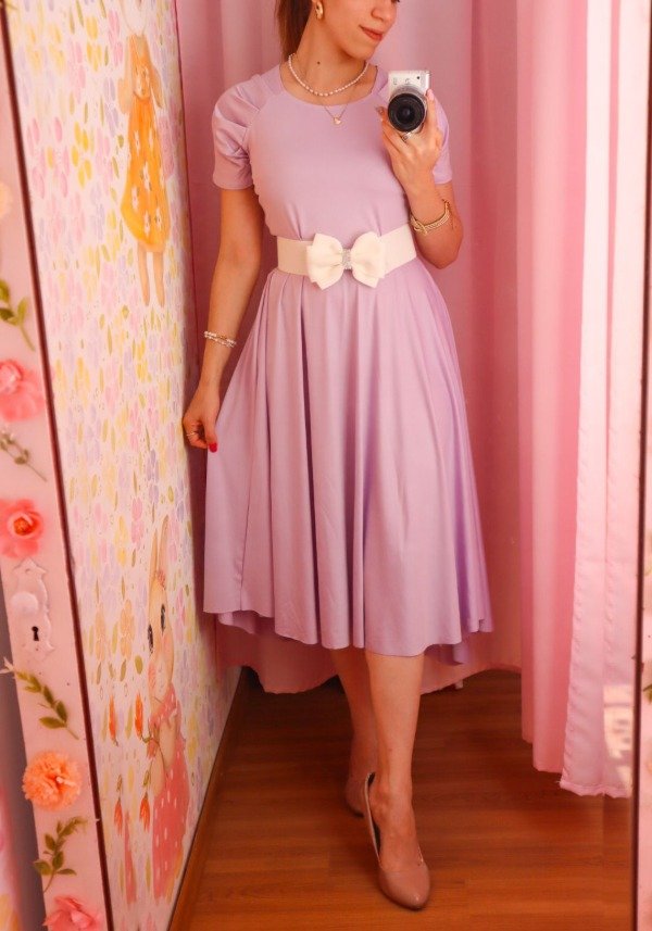 Hermoso vestido de seda fría con corte en la cintura, falda cola de pato y detalle de pliegues en las mangas.