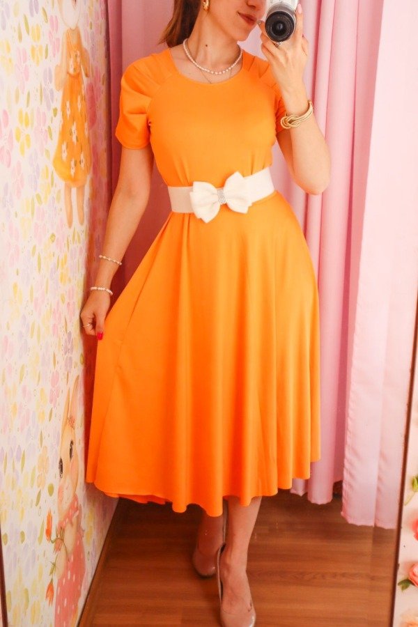 Hermoso vestido de seda fría con corte en la cintura, falda cola de pato y detalle de pliegues en las mangas.